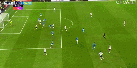 第90+3分钟,萨尔做球,帕利尼亚破门,热刺1-1