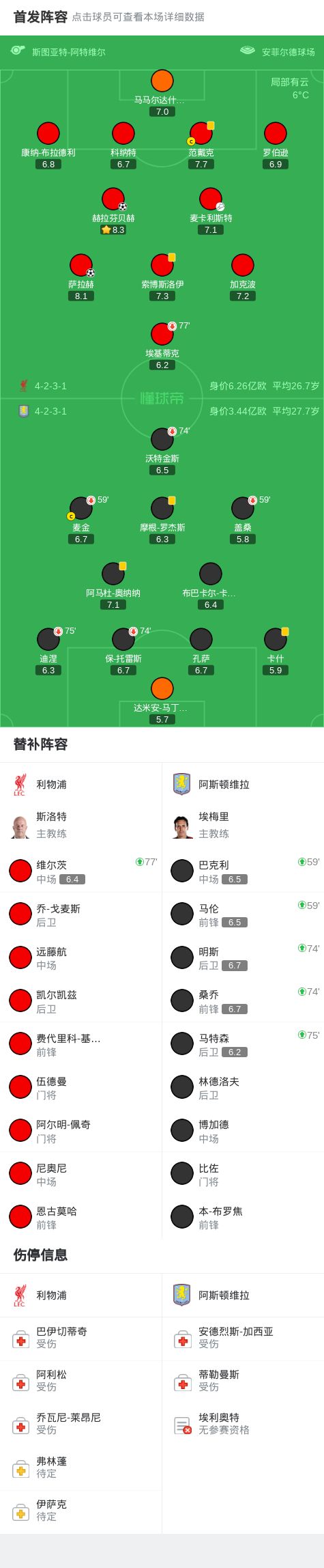 - 北京时间11月2日,英格兰足球超级联赛第10轮,利物浦坐镇主场迎战阿斯顿维拉。上半场,大马丁送礼,萨拉赫破门。下...发表于: 11-02 08:55