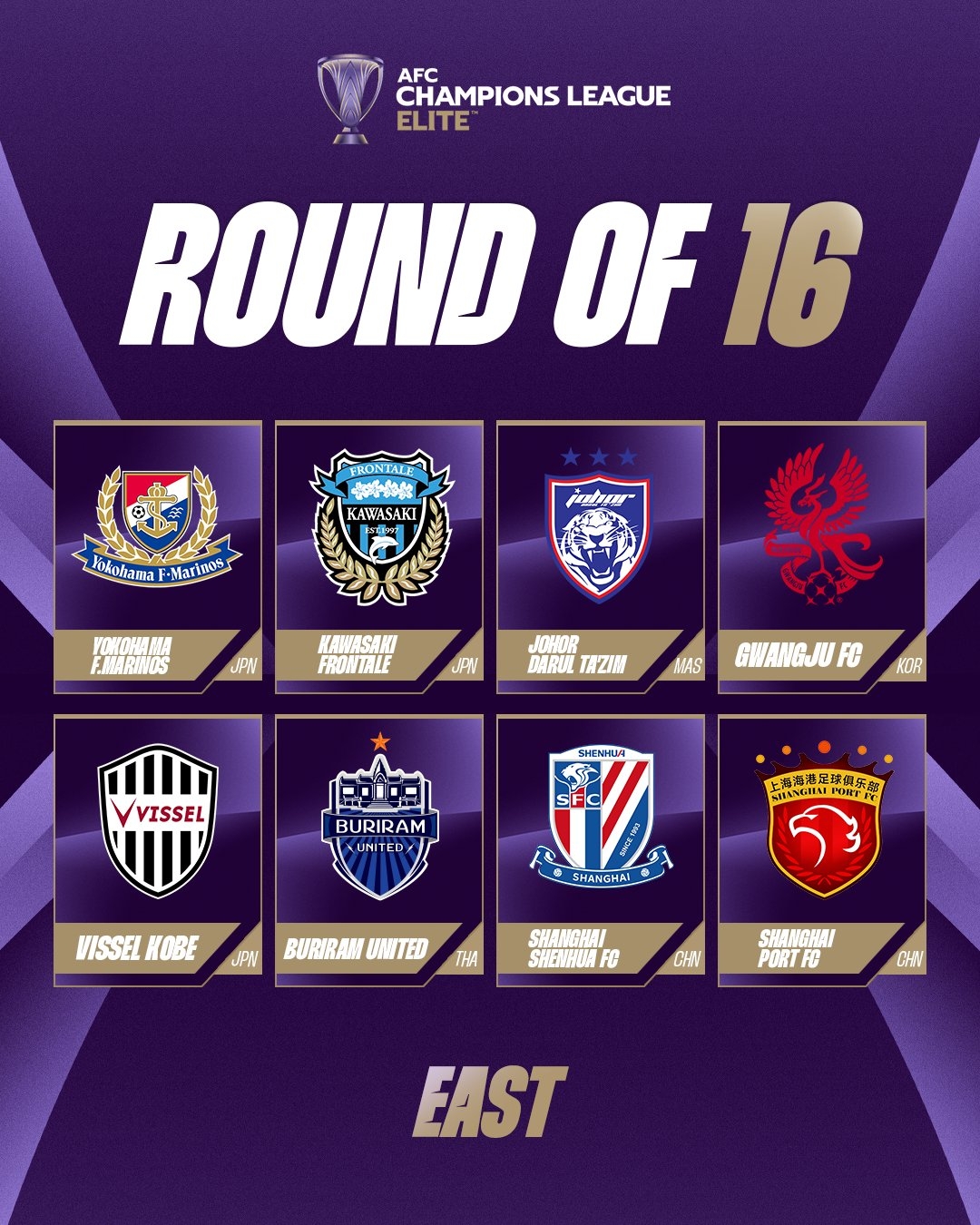 山东积分清零!亚冠精英联赛16强对阵:申花vs川崎,海港vs横滨
