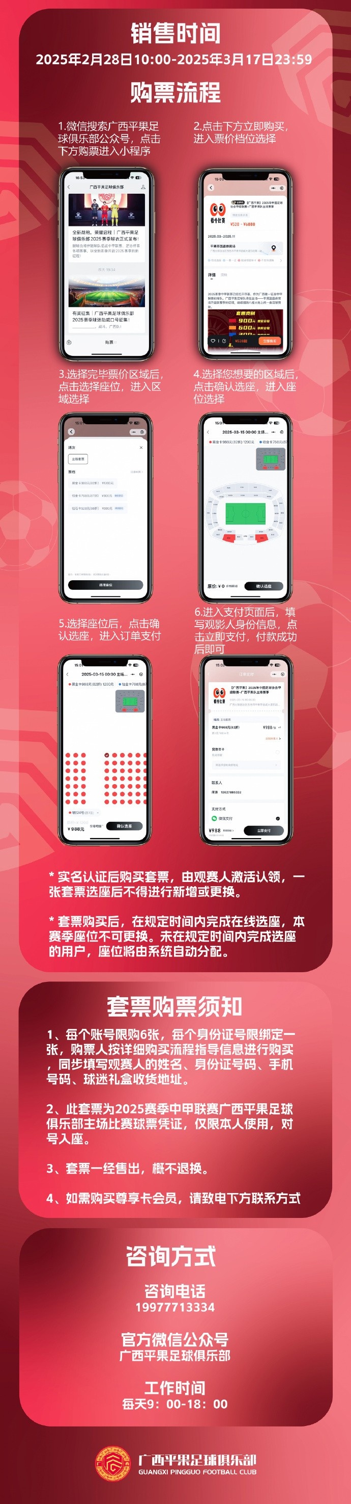票务公告|2025赛季广西平果FC联赛主场套票销售公告