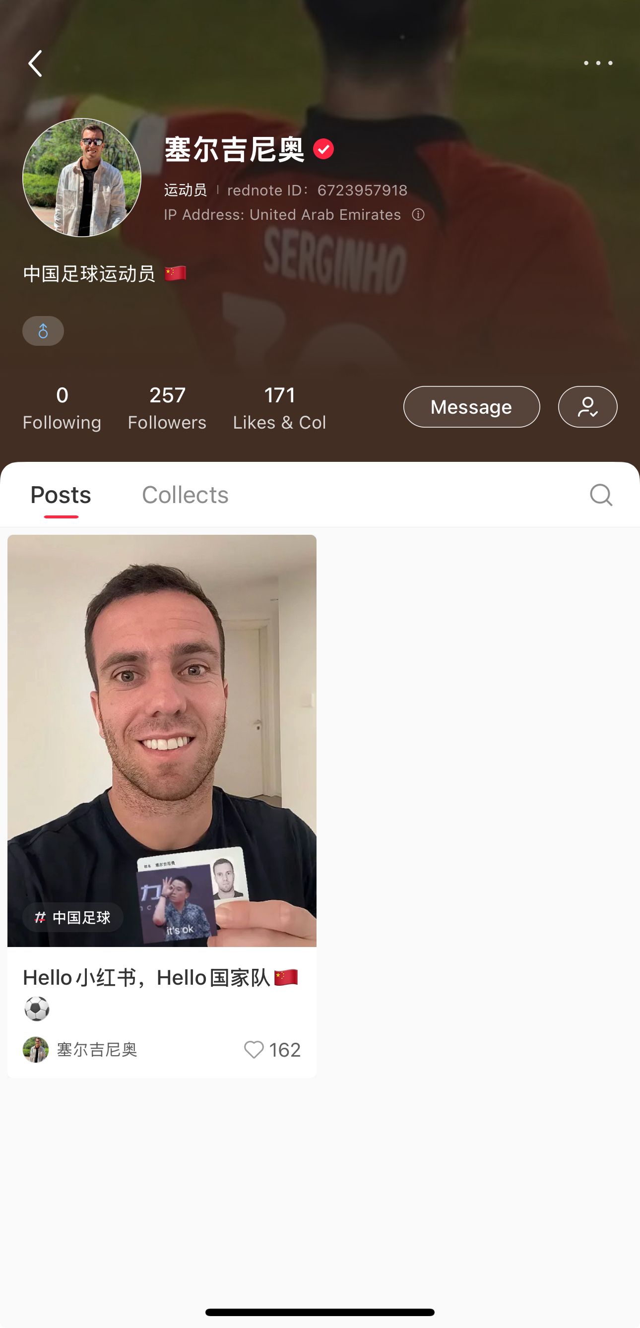 03月13日讯 塞尔吉尼奥在社交媒体晒出了个人身份证,配文我是中国足球运动员塞尔吉尼奥!IP地址显示塞尔吉尼奥已经抵达阿联酋。