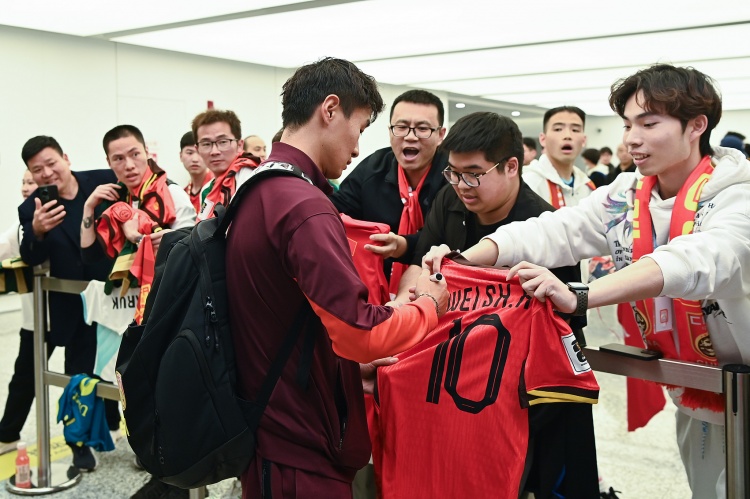 国足落地杭州:接机球迷众多伊万神态轻松塞鸟韦世豪为球迷签名
