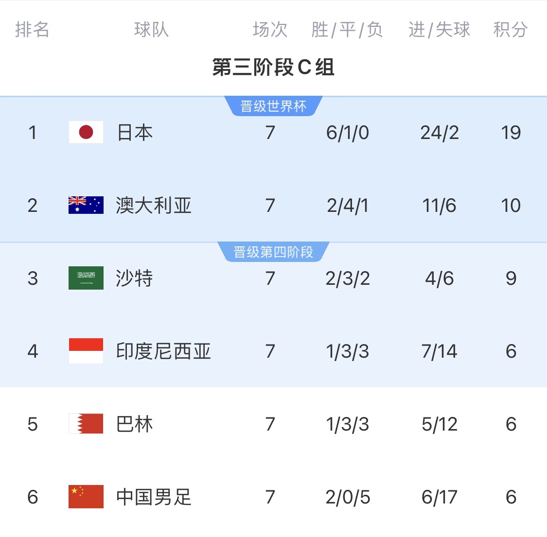 国足上一场0-1客负沙特,本场如果如果再输球,将遭遇18强赛三连败。球队前7轮2胜5负、积6分小组垫底,净胜球-11。今晚若输给澳大利亚,国足将提前2轮无缘前二。