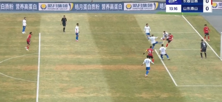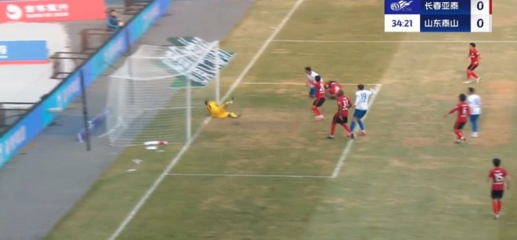 克雷桑头球破门,李源一赛季第4次助攻!泰山领先!第34分钟,李源一左路45度角斜传到禁区,克雷桑摆脱亚泰队员头球攻门入网,裁判最初判罚越位,随后通过VAR,裁判改判进球有效,长春亚泰0-1山东泰山!↓