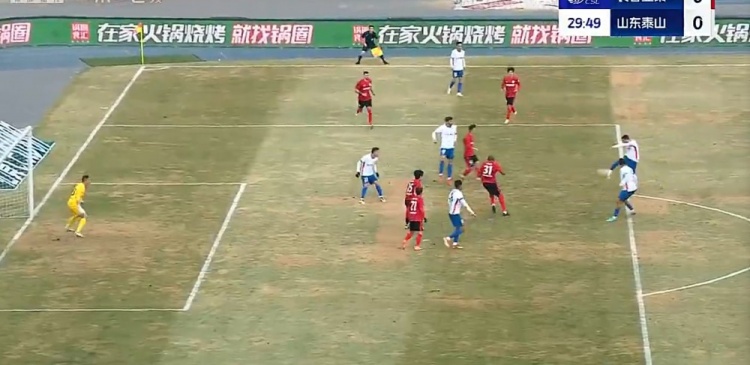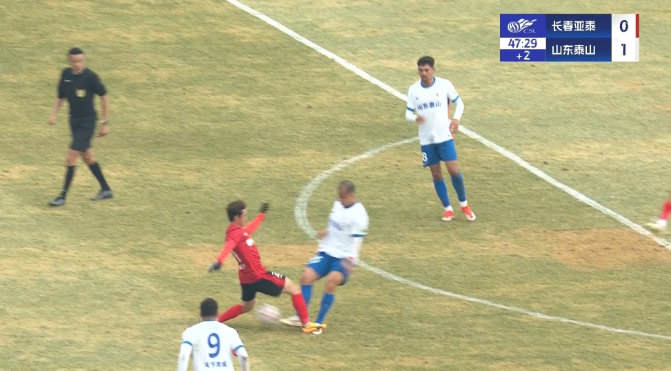 上半场比赛结束,山东泰山客场暂时1-0领先长春亚泰。
