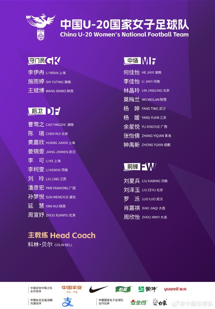 U20女足集训名单:科林贝尔挂帅,余星悦、周欣怡在列