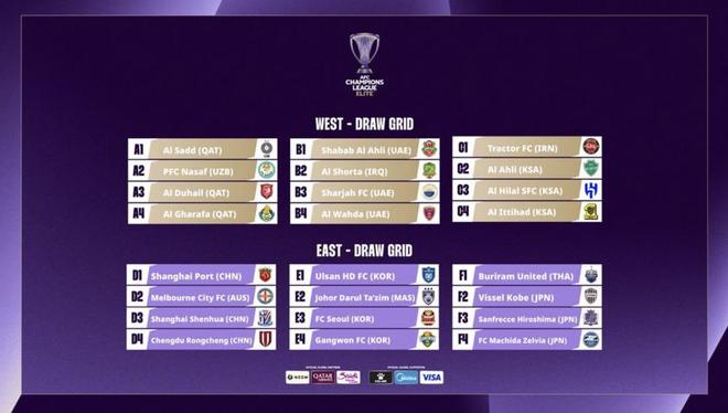 本赛季亚冠精英联赛抽签分组结果