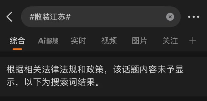 只不过有些讽刺的是,尽管苏超将江苏13市的竞争作为一个核心文化卖点,但“江苏十三太保”曾是社交媒体屏蔽的违禁词,而“散装江苏”则是如今话题依旧在微博上显示为“根据相关法律法规和政策,该话题内容未予显示”。