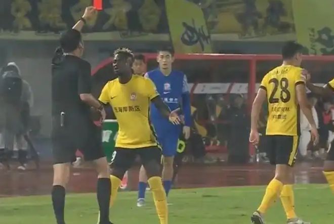 第45分钟,张呈栋再次吃到第二张红牌!他因为不满边裁的越位判罚,直接跑到场边发泄情绪,最终被主裁判由黄牌改判红牌。